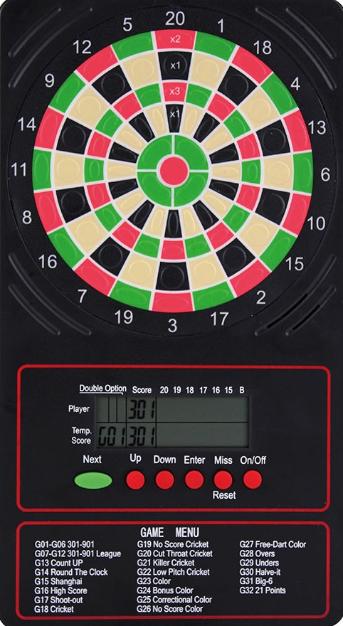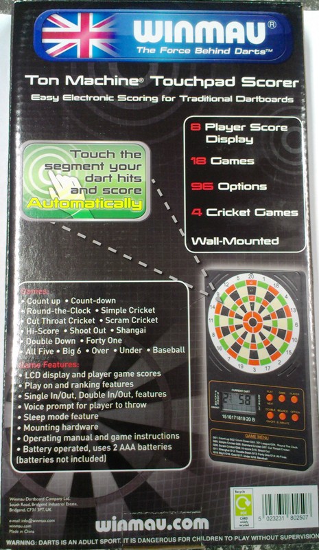 8 Player score display, 18 games, 96 options, 4 cricket games.