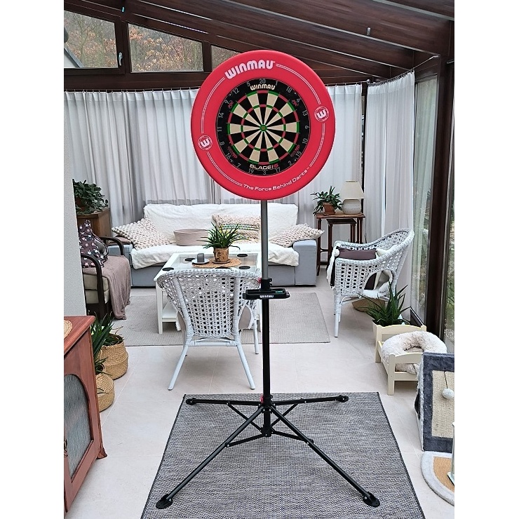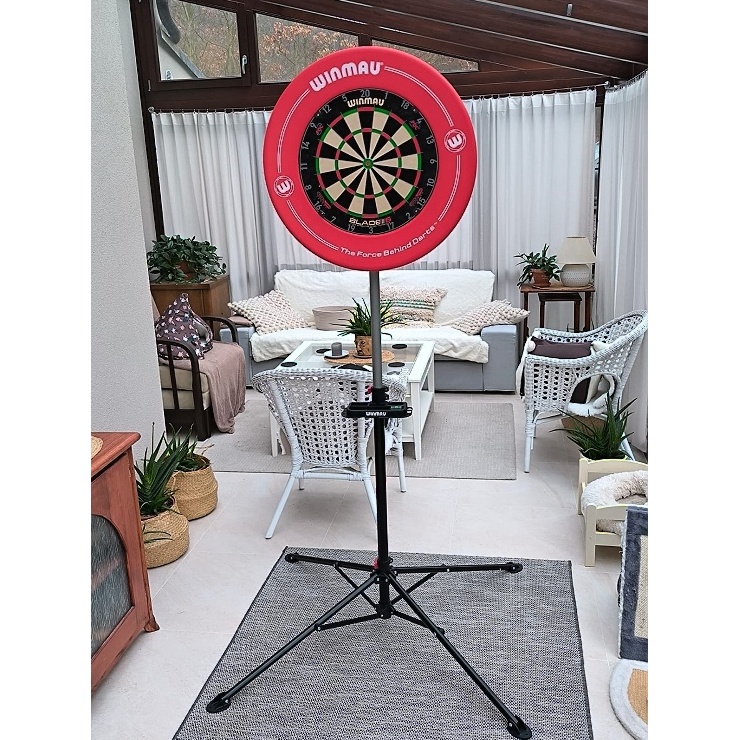 Snadno rozložitelný lehký stojan na steelový terč do volného prostoru, tam, kde není možné mít přidělaný terč na zdi. Kompatibilní na steelové terče všech značek Winmau, Harrows, Target, Unicorn, Bulls …