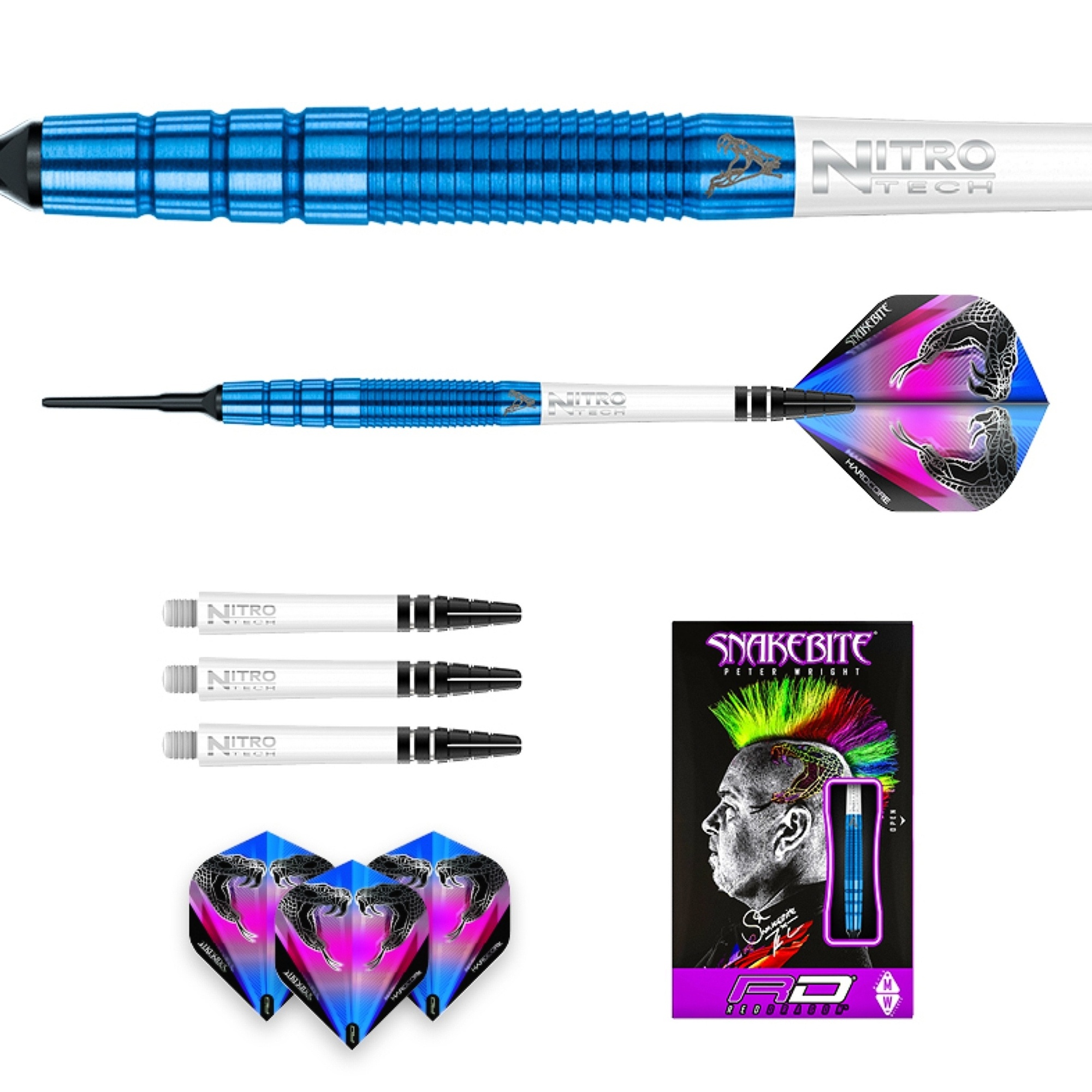 Šipky soft Peter Wright Snakebite PL 15 Blue, 90% tung.