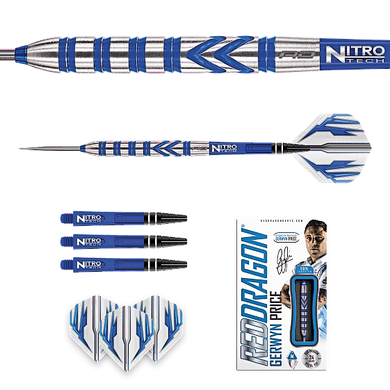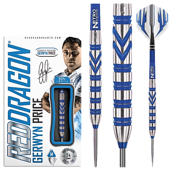 Šipky steel Red Dragon Gerwyn Price, Blue PVD, 90% tung.
